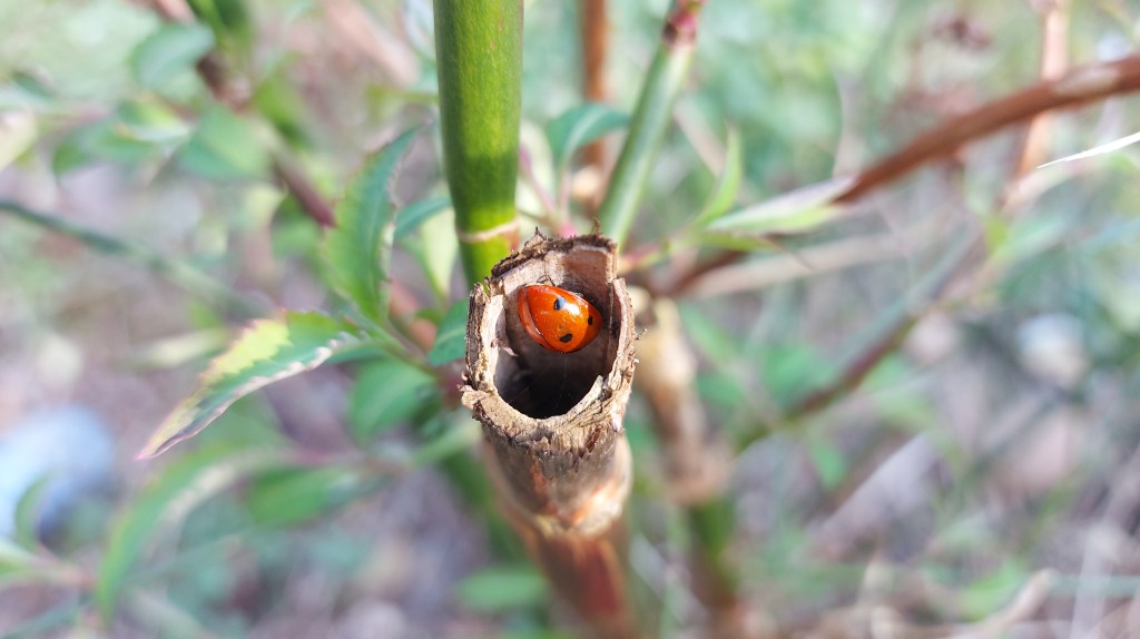 In het voorjaar knip ik de dorre stengels met een grote heggenschaar in stukken en laat dat op de bodem liggen. Er overwinteren namelijk nog wel eens insecten in de stelen en die krijgen zo de kans om er weer uit te kruipen als het warmer wordt. De bodem wordt zo bedekt en kan beter vocht vasthouden. Dat is echt nodig op mijn arme droge zandgrond. De jonge planten groeien er gewoon tussendoor, en de oude stelen vergaan en zullen de structuur van de bodem weer verbeteren.
