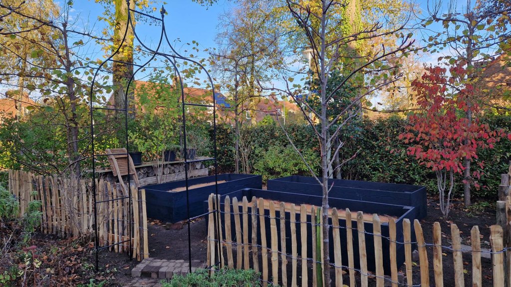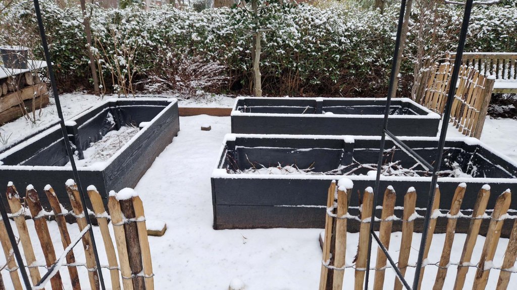 Drie moestuinbakken! En best nog ruimte om rondom te lopen.